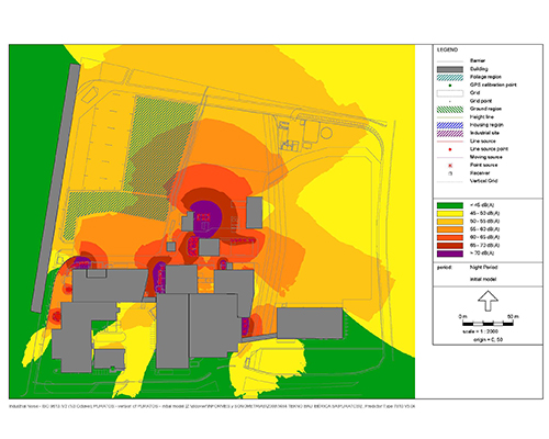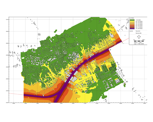 Predicción del impacto acústico de focos de ruido (maquinaria, actividades, …) e infraestructuras viarias (ferrocarriles, carreteras, aeropuertos, …).